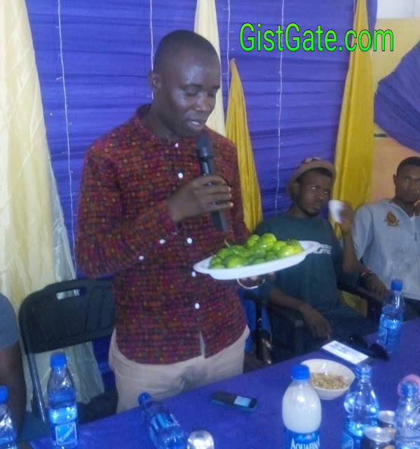 | Lecturer Ebiriukwu Anthony presenting garden eggs to at the induction |